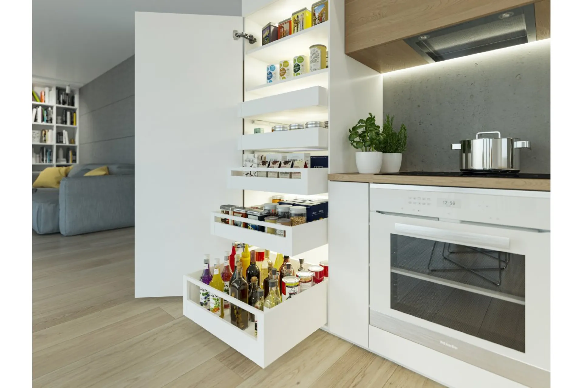 Zásuvka Axis Pro má vysokú odolnosť certifikovanú na 60 000 cyklov. Poskytuje plný výsuv v dĺžkach od 250 do 600 mm a zatvárací mechanizmus zabezpečuje tichú prevádzku a jemné dovieranie zásuvky. Vďaka piatim výškovým variantom sa dokonale prispôsobí vašej kuchyni, pričom bočná strana zásuvky so šírkou iba 14 mm umožňuje maximálne využitie vnútorného priestoru nábytku. Zásuvka unesie až 40 kg rôznych výrobkov a ponúka možnosť vnútorného výsuvu. Inštalácia je jednoduchá vďaka pohodlnému nastaveniu zvnútra, možnosti nastavenia náklonu a horizontálneho nastavenia v rozsahu ±2 mm. Zásuvka je kompatibilná s rôznymi systémami organizácie priestoru, príborovými vložkami, protišmykovými rohožami a triedičmi odpadu.