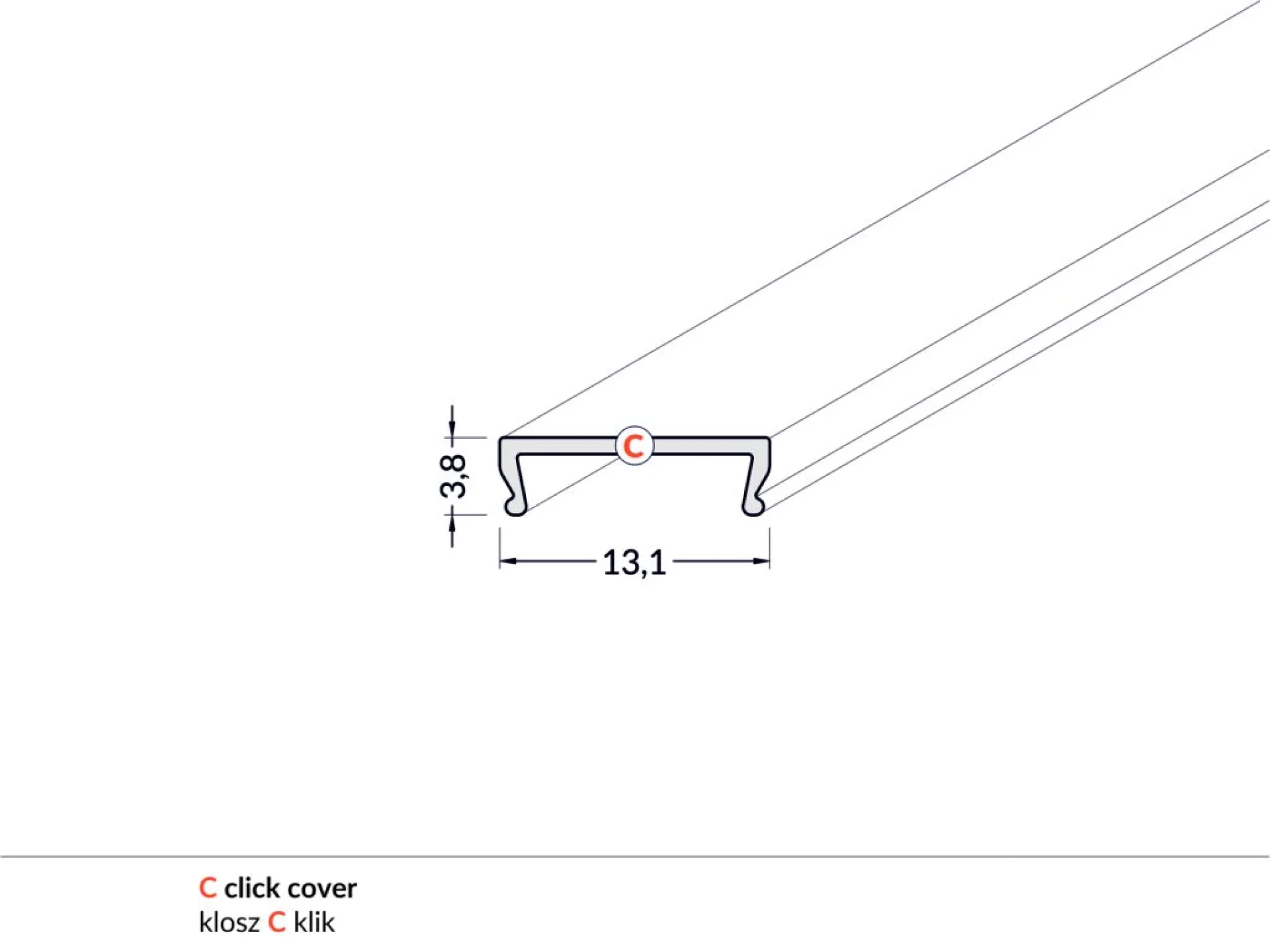 Krycia lišta naklápavacia (typ C) priesvitná.
