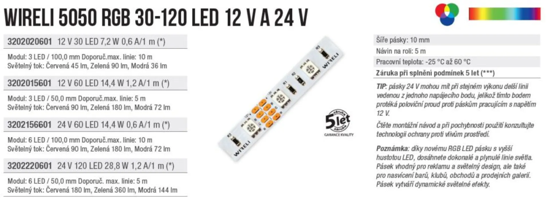 Štandardný značkový RGB LED pásik WIRELI s vysokou kvalitou a dlhou životnosťou.