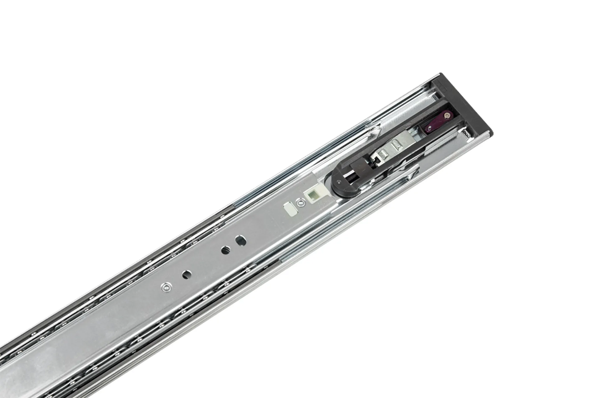 Guľôčkový celovýsuv so samootváracím mechanizmom. Dĺžka 450mm. Dynamická nosnosť pre túto dĺžku je 45kg. POZOR: nie je možné otvárať "klasickým" spôsobom, dôjde k poškodeniu mechanizmu (ulomenie západky) a výsuv nedrží zatvorený.