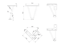 Oceľová šikmá nábytková noha DN-802 H-152 v čiernom matnom prevedení s podložkou proti poškriabaniu podlahy