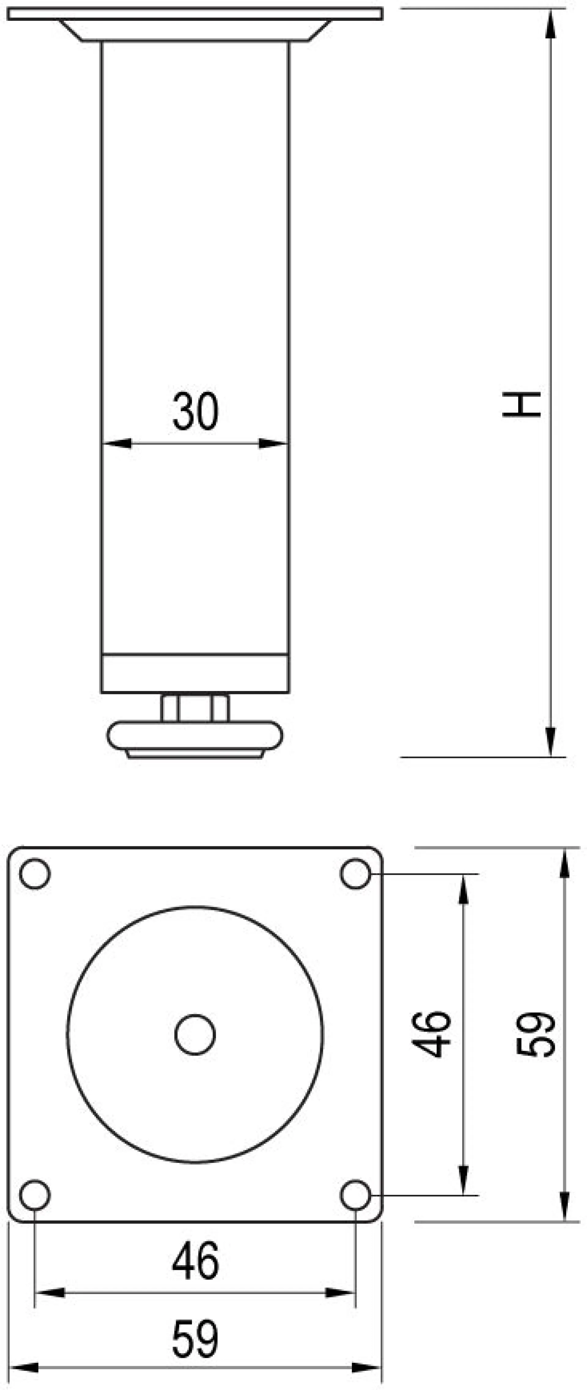 Nábytková noha. Povrchová úprava: chróm lesklý