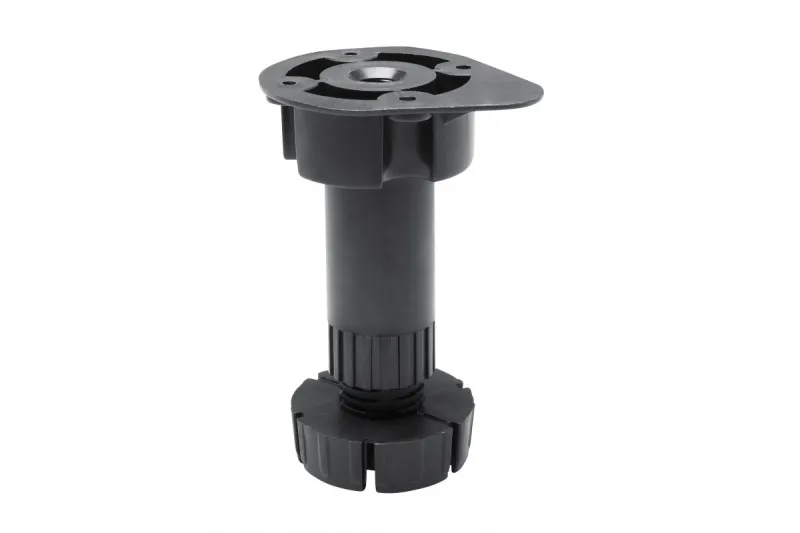 Nábytková soklová noha z čierneho plastu. Určená na montáž nábytku so soklom. Odoláva zaťaženiu až 60 kg. Ideálne pre kuchynské skrinky.