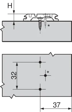 Upevnenie: na naskrutkovanie pre skrutky do drevotrieskovej dosky