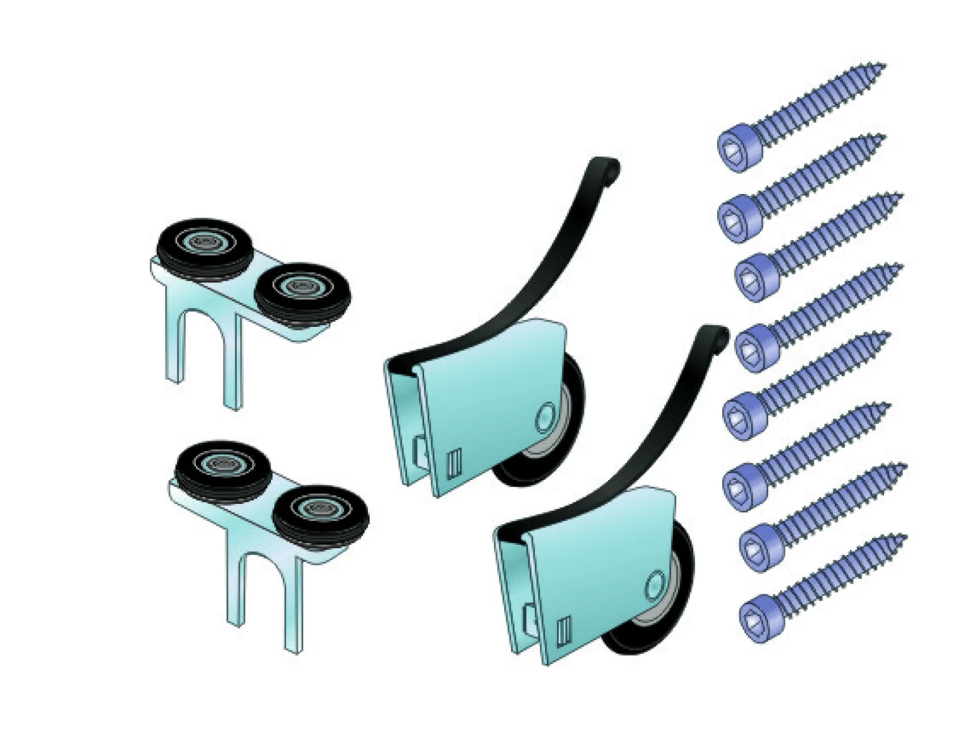 2x horný vozík, 2x spodný vozík, skrutky