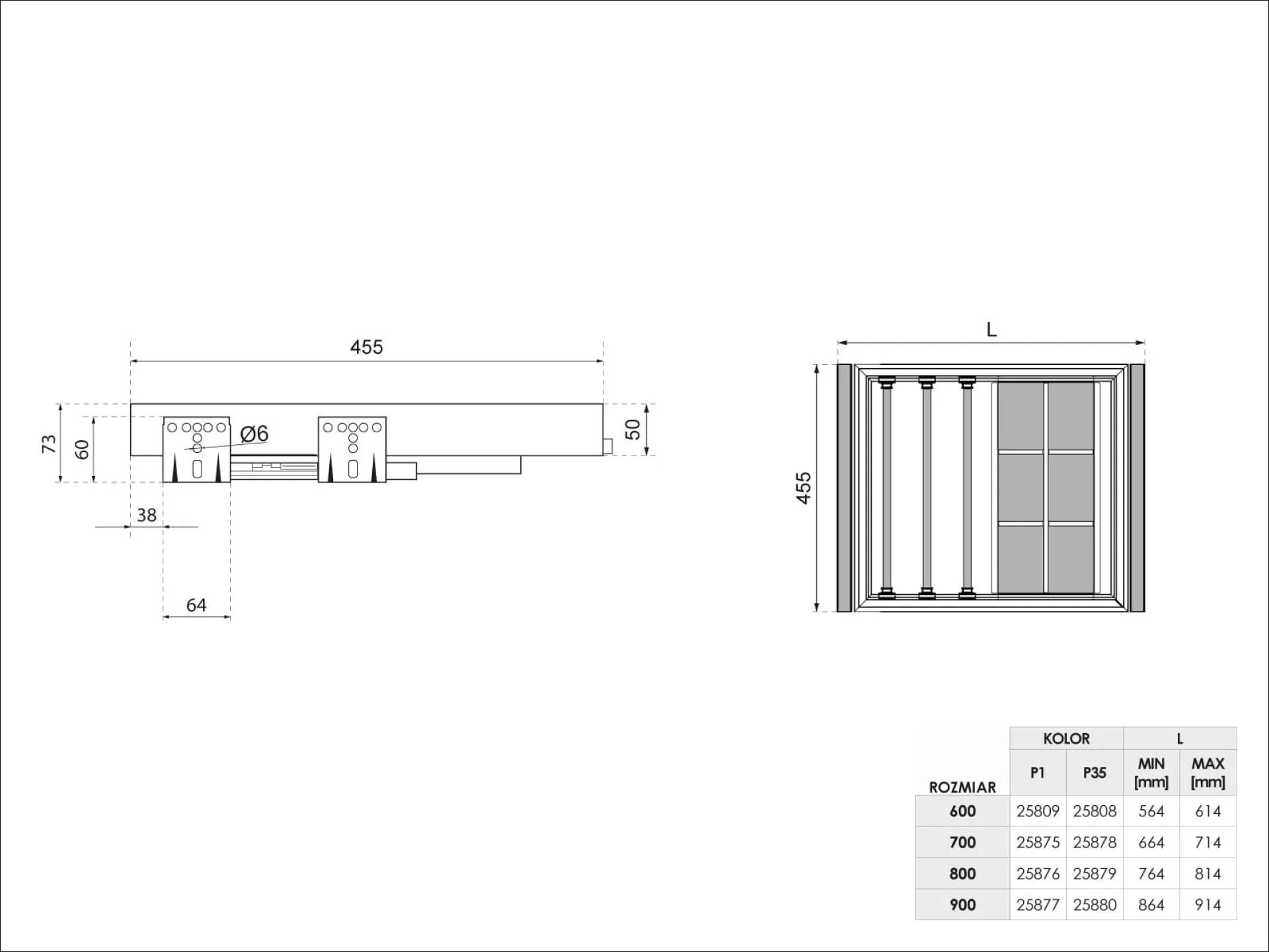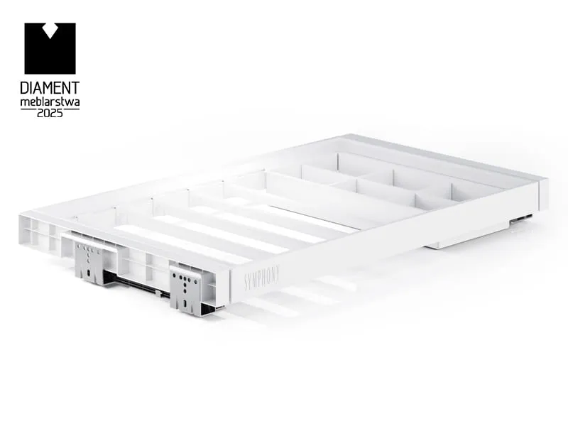 Séria SYMPHONY ponúka reguláciu šírky rámu v rozsahu 5 cm, čo umožňuje ideálne prispôsobenie rôznym šírkam skríň. Regulácia je rovnomerne rozdelená – rám možno upraviť o 2,5 cm na každej strane. Univerzálny úchyt umožňuje rýchlu výmenu doplnkov za iné produkty zo série SYMPHONY.