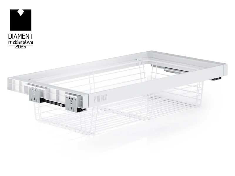 Oceľový drôtený kôš do šatníka SYMPHONY WB-660-900 L-455 H-170 BIELY – Tichý dojazd, plný výsuv, nosnosť 35 kg