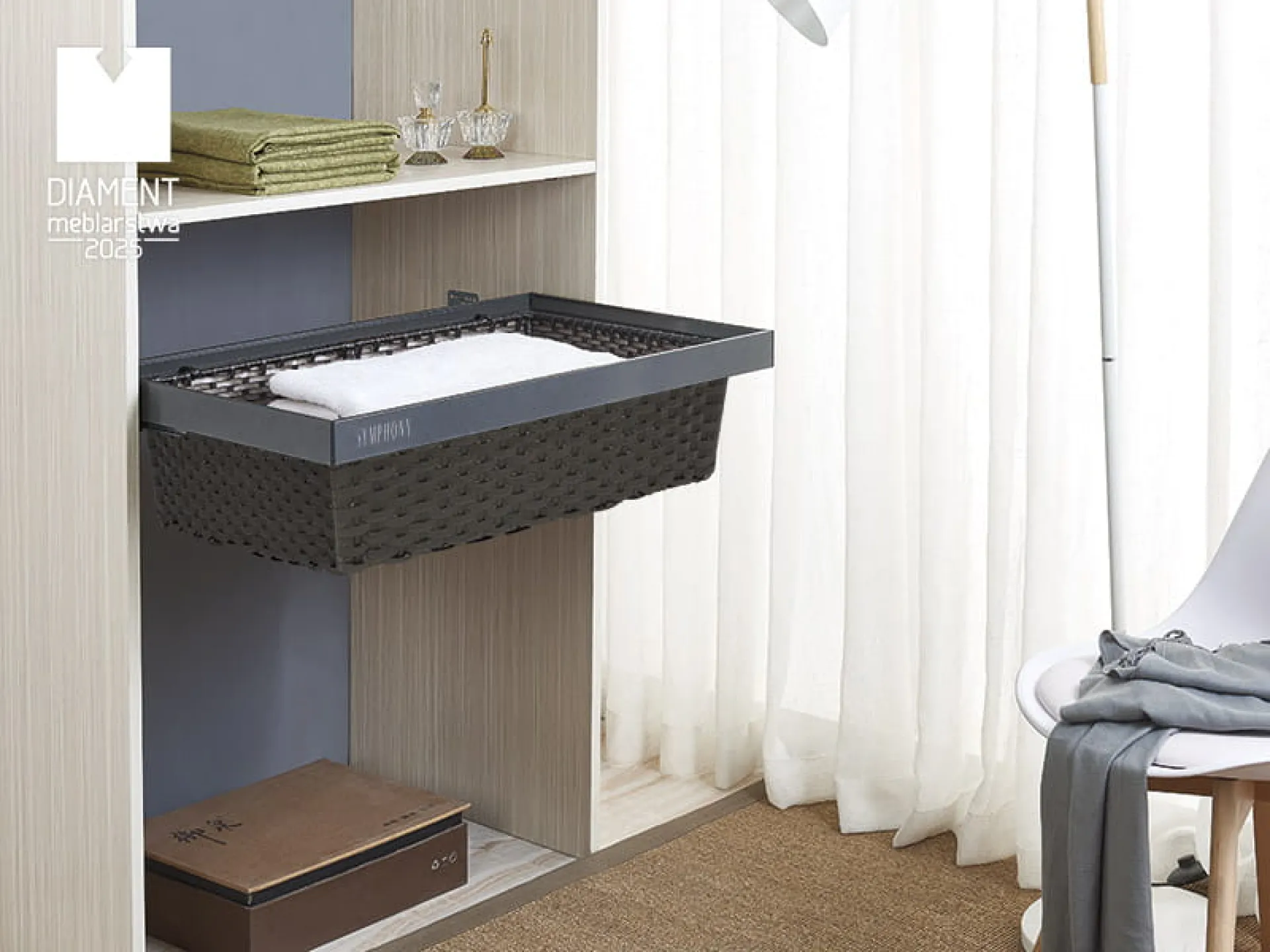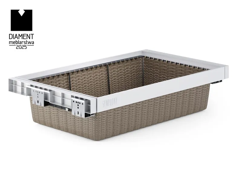 Univerzálny úchyt umožňuje rýchlu výmenu koša a jeho zamenenie s inými doplnkami zo série SYMPHONY, čím sa zvyšuje funkčnosť a ponúka široká škála možností prispôsobenia interiéru skrine.